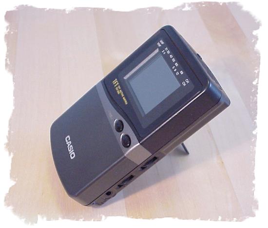 Der EV-200 ist 72 mm breit, 30 mm dick und 118 mm hoch - somit schon ziemlich kompakt. Die Leistungsaufnahme des EV-200N beträgt laut Typenschild genau 3 Watt. Betriebsbereit mit 3 Mignon-Akkus wiegt der CASIO gerade einmal 240 Gramm.