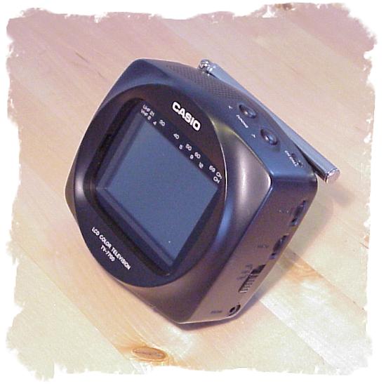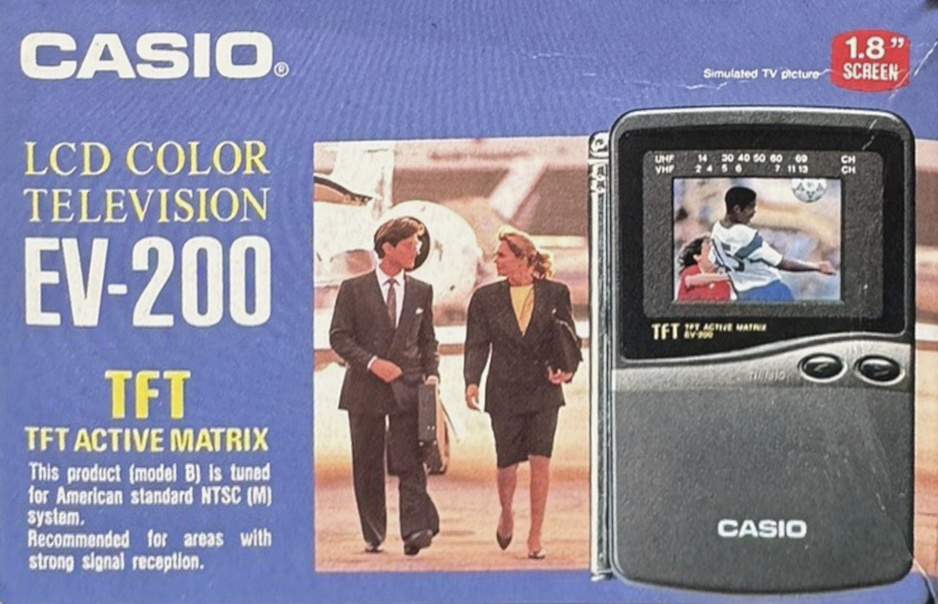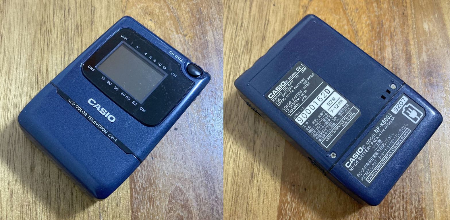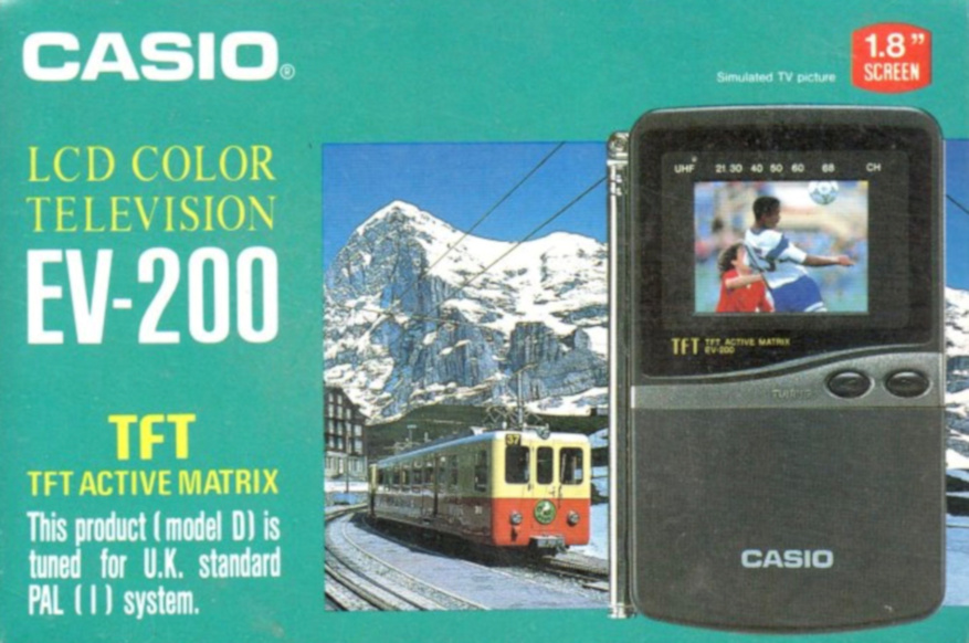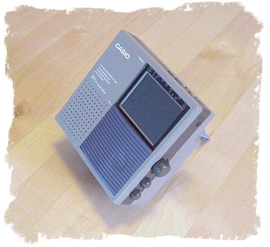 Shakai no Mado (Fenster zur Gesellschaft) war der Werbeslogan für den CASIO Personal Vision CV-1. Im Juli 1992 in Japan vorgestellt, laut Verpackung der weltweit kleinste Taschenfernseher - noch dazu mit einem hochwertigen Aktivmatrix-Display. Bestimmt das kleinste "TFT", das jemals in einem Fernsehgerät eingesetzt wurde (1,4 Zoll gleich 35 mm). Aber natürlich schön kontrastreich und scharf. Überhaupt ist das ganze Gerät eines der niedlichsten Teile dieser Sammlung.