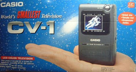 Trotz der bescheidenen Abmessungen verfügt der CV-1 über einen praktischen "Nur-Ton-Modus" und die dazu passende Kontroll-Leuchtdiode. Wie nicht anders zu erwarten ist der CV-1 einer der leichtesten Farbfernseher überhaupt: Er wiegt spärliche 90 Gramm ohne Batteriebox, mit Box und 5 (!) Micro-Akkus sind es auch nur rund 160 Gramm. Made in Japan.
