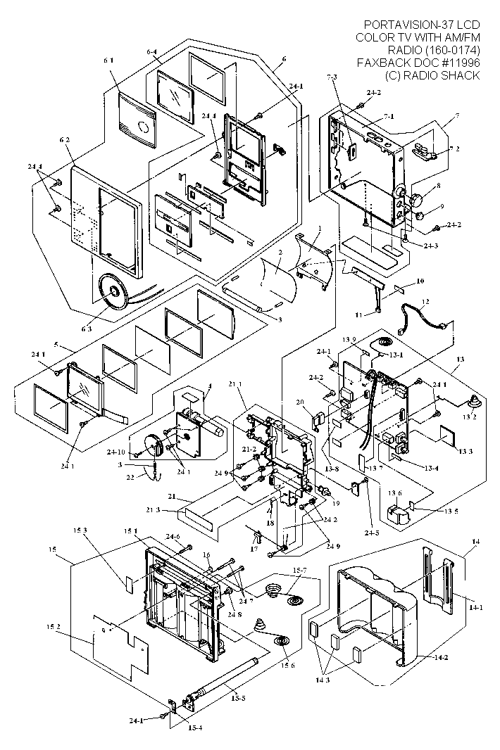 Die Ausstattung des EV-2500 ist ganz ordentlich: 65 mm TFT-Display (220 * 279 = 61.380 Bildpunkte), A/V-Eingang (3,5 mm), Antenneneingang (in Deutschland und Italien normalerweise verstöpselt), UKW/MW Radio mit beleuchtbarer Skala (hinter der verschiebbaren Displayabdeckung) und ein Lautsprecher, der mit 50 mm Durchmesser für einen ziemlich satten Sound sorgt. Wer den EV-2500 genauer unter die Lupe nehmen möchte - hier findet sich ein "offizielles" Produktphoto. In der Supportdatenbank von Radio Shack steht für dieses Gerät eine schöne Explosionszeichnung zur Verfügung.