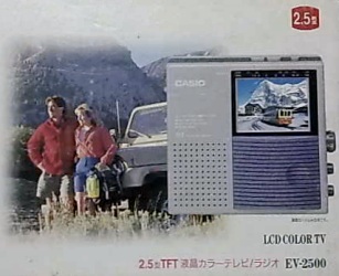 Die Diagonale des Displays beträgt 1,8 Zoll gleich 46 mm, die Auflösung 220 * 279 gleich 61.380 Bildpunkte. Der oben mittig abgebildete "amerikanische" TV-5100B wiegt mit 3 Mignon-Akkus 260 Gramm. Made in Japan.