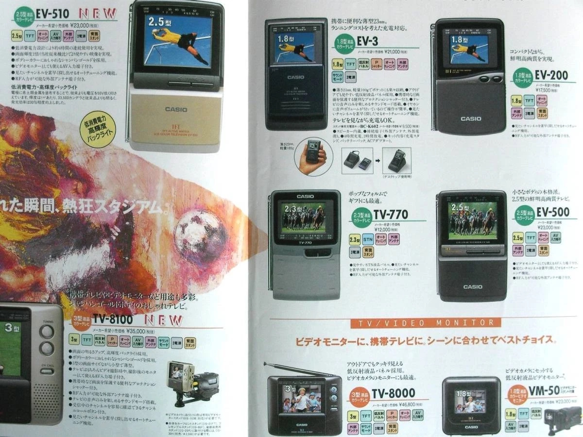 In den Jahren 1997 bis 1999 war der CASIO TV-770 die Einstiegsdroge am deutschen Taschenfernsehermarkt: Ein eher unscheinbares Gerät ohne besondere Extras, aber dafür in einem attraktiven Preissegment. Dieses spezielle Exemplar links ist ausschließlich für den brasilianischen Markt gedacht, denn es unterstützt nur PAL M, eine eigentümliche Mischung aus dem europäischen PAL Verfahren zur Farbkodierung und dem in Nordamerika üblichen Standard zur Bildübertragung ("M").