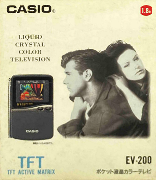 Shakai no Mado (Fenster zur Gesellschaft) war der Werbeslogan für den CASIO Personal Vision CV-1. Im Juli 1992 in Japan vorgestellt, laut Verpackung der weltweit kleinste Taschenfernseher - noch dazu mit einem hochwertigen Aktivmatrix-Display. Bestimmt das kleinste "TFT", das jemals in einem Fernsehgerät eingesetzt wurde (1,4 Zoll gleich 35 mm). Aber natürlich schön kontrastreich und scharf. Überhaupt ist das ganze Gerät eines der niedlichsten Teile dieser Sammlung.