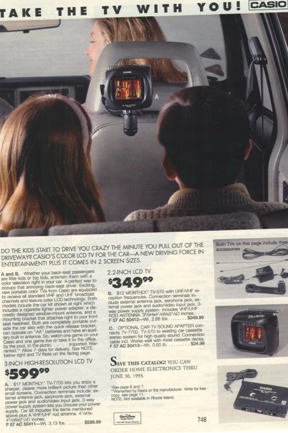 Ein A/V-Eingang (3,5 mm Buchse) gehört ebenfalls zur Ausstattung, der Antenneneingang ist bei einigen Modellvarianten verstöpselt. Im Sears-Katalog von 1992 wurde der TV-7700 zusammen mit einem "Car-Kit" für 599$ angeboten.
