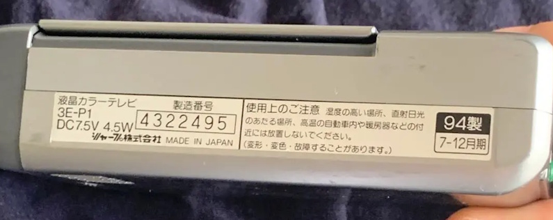 Mein Exemplar stammt aus der zweiten Jahreshälfte 1993 und ich habe es im April 2022 für sparsame 9 Euro bei einem japanischen Internet-Auktionshaus erworben. Dieser 3E-L1-N wiegt betriebsbereit rund 450 Gramm und verbraucht laut Typenschild mächtige 6,9 Watt bei 7,5 Volt. Ein ähnliches Modell mit 4-Zoll Display hört auf den Namen 4E-L1. Made in Japan.