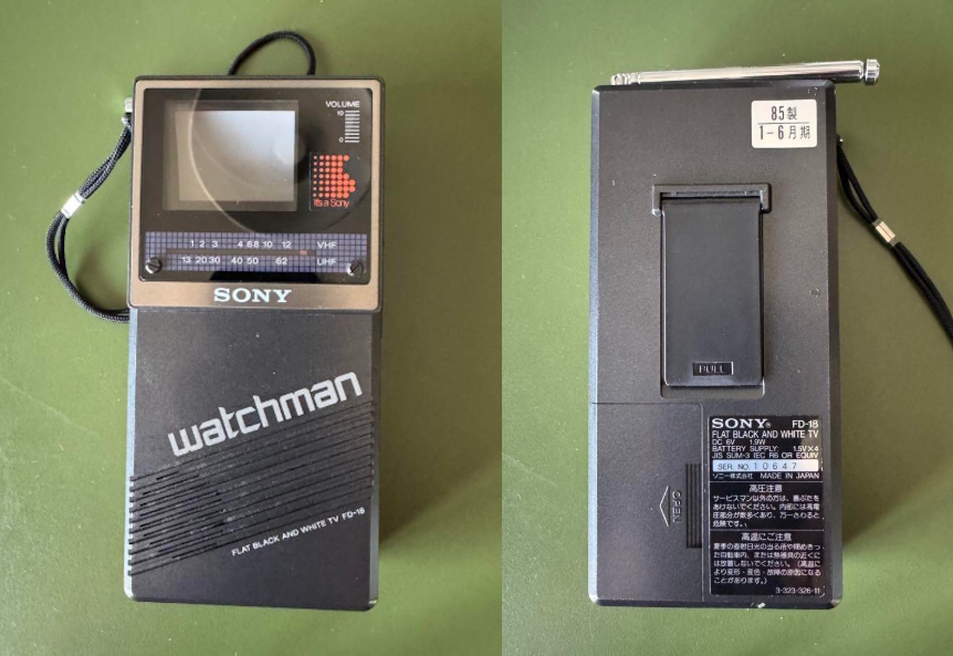 Nach dem Ur-Watchman FD-210 war dieser SONY FD-20 im Jahr 1983 der nächste Schritt hin zum echten Taschenfernseher. Das Gehäuse ist schon merklich geschrumpft und auch das Gewicht konnte um rund 150 Gramm verringert werden. Allerdings sind mit der Miniaturisierung auch einige Features auf der Strecke geblieben, so fehlt beispielsweise der "nur-Ton-Modus". Im Gegenzug besitzt der FD-20 dafür einen Videoeingang - ein Ausstattungsmerkmal, auf das man bei den meisten anderen Röhren-Watchmännern verzichten muss.