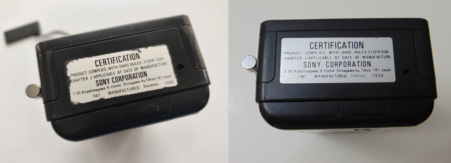 Nicht annähernd so schick wie die schlanken Vorgängermodelle ist der in Europa nicht erhältliche SONY Watchman FD-230. Das Gerät ist deutlich einfacher aufgebaut, hat keine besonderen Extras und kostete dafür damals nur knapp 100$. Das abgebildete Exemplar hat mich 1991 bei meiner ersten USA-Nationalpark-Tour (mit Zelt und so) begleitet. Die charakteristische Flachbildröhre vom Typ 03JM (Details) hat eine Diagonale von immerhin 68 mm, die Leistungsaufnahme liegt gemäß Typenschild bei 2,3 Watt. Alternativ gab's dieses Modell auch in einer (ziemlich seltenen) Ausführung „BrandsMart USA“ in blau.