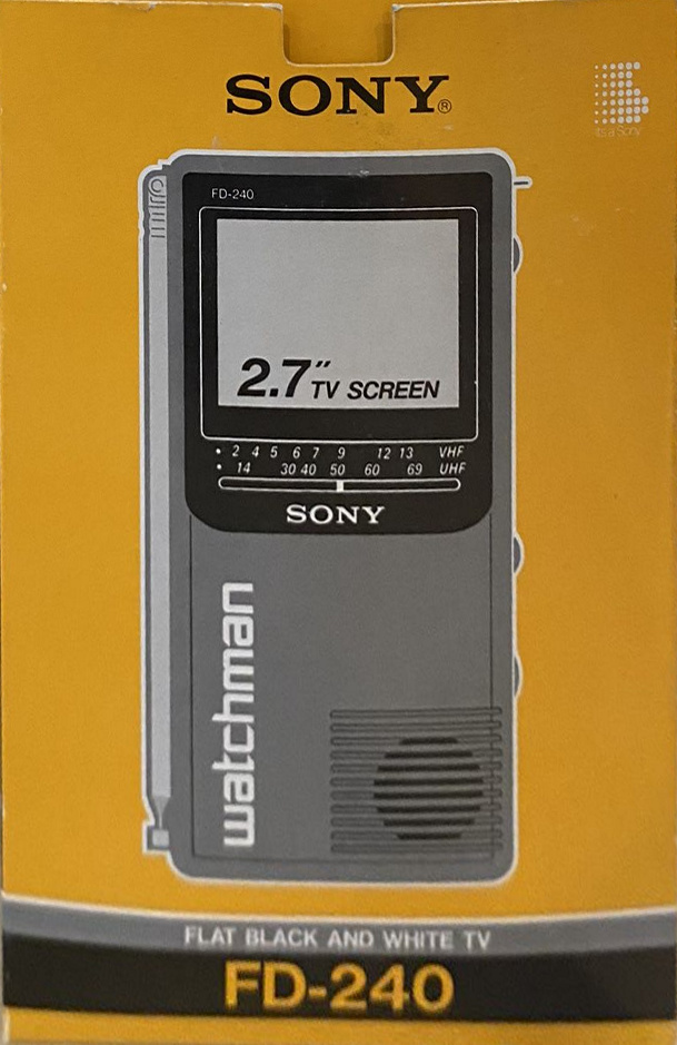 Während mir mein FD-230 in einer lumpigen Blisterverpackung verkauft wurde, hat SONY dem FD-240 wenigstens eine angemessene Schachtel gegönnt. Unter der Bezeichnung FD-240BE gab es dieses Model auch in einer "europäischen" Fassung, das (umschaltbar) in Westeuropa-ohne-Frankreich und England funktionierte. Ohne Empfangsteil, aber ansonsten weitgehend baugleich, war der 240er auch als Monitor SONY FDM-027 ("Watchcam") erhältlich.